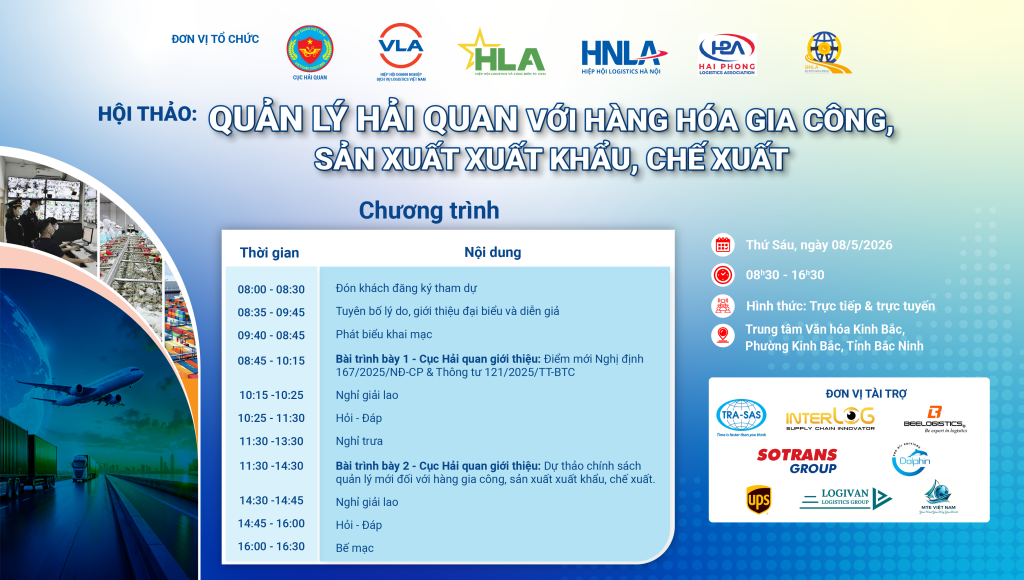 Chuỗi hội thảo do Ban Hải quan và Thuận lợi hóa Thương mại, Hiệp hội Doanh nghiệp dịch vụ logistics Việt Nam (VLA) phối hợp cùng các hiệp hội logistics Hà Nội, Hải Phòng, TP. Hồ Chí Minh, Bắc Ninh và Cục Hải quan tổ chức.