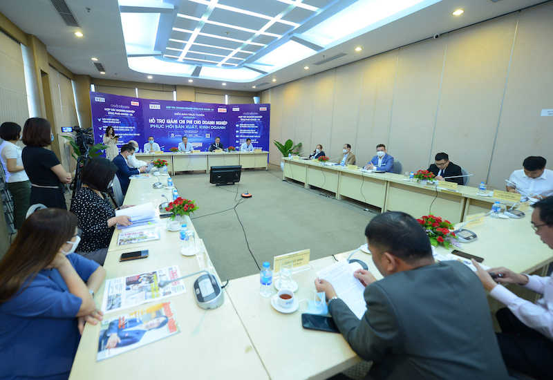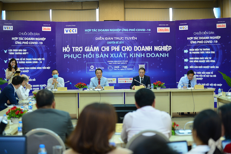 Diễn đàn “Hỗ trợ giảm chi phí cho doanh nghiệp phục hồi sản xuất, kinh doanh” chiều ngày 27/10.
